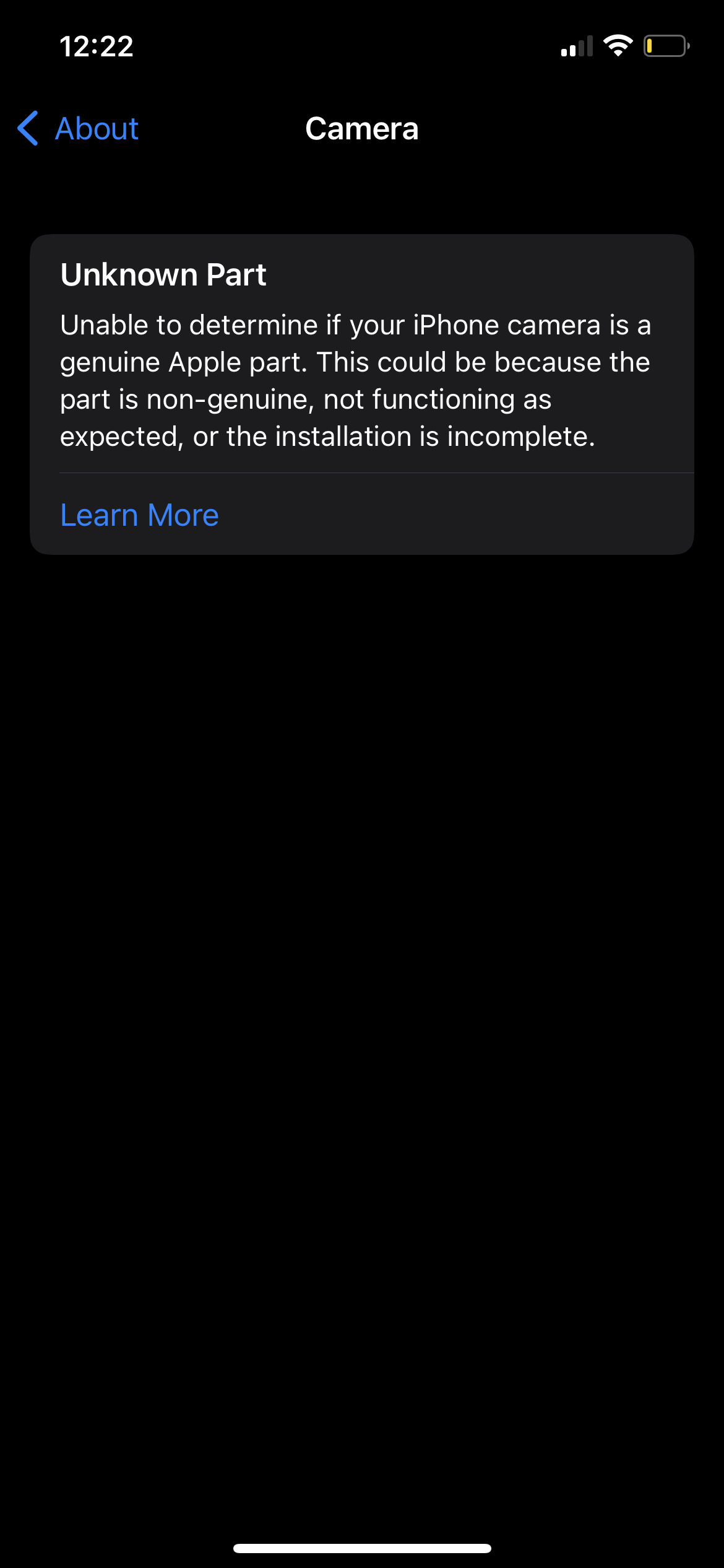 My iPhone is brand new from Verizon, today my camera started malfunctioning and I received the notification that my camera had an “unknown part.” Has anyone else had a similar experience?