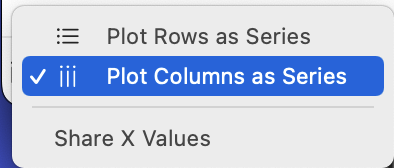 I cannot create a Scatter Chart using the current version of Numbers. I select the column for the X axis (a date) and a different column for the Y axis (a number), and then click on Chart, then select Scatter Plot. The plot that is produced uses the same column of data for both X and Y axes, resulting in a straight line set of symbols. If I try to manually change the column for either the X or Y data it appears to do so, but then reverts to the original behavior. If I create a line plot for the same set of data, it is correct, so the data set is not the problem. I can provide a example spreadsheet if it would be useful.
