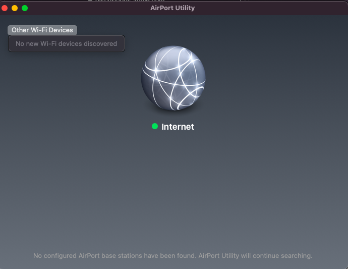 I have also tried adding a Wifi via the Airport Utility found in the Applications>Utilities, but that too is unale to recognise Wifi (see screen shot)