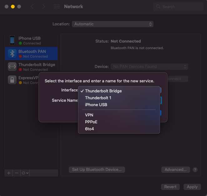 Then through Network Preferences screen, WiFi is not showing, and further I am unable to add Wifi via the '+' button as it does not show a Wifi option (see two screen shots of NetWork Preferences)