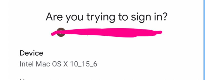 Originally trying to login to google from iPhone safari and kept getting stuck loading. I’ve resolved that issue but when finally able to get somewhere I had to verify myself by approving login access via notification- it listed my device as “Intel Mac OS X 10_15_6 “ and my correct location. I approved as the forum said it was normal. However after approving and signing in I got another notification that says a Mac just signed into my account. Is it me logged in or is someone else from a Mac logged in?