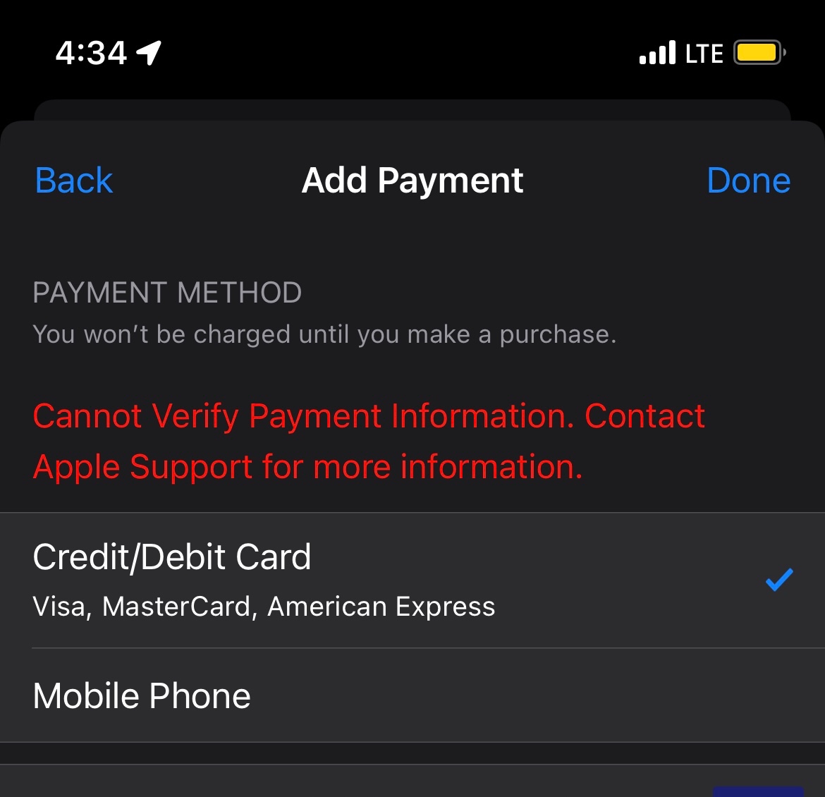 or if you see your card is declined See this article ☞ If your payment method is declined in the App Store or iTunes Store - Apple If you are trying to add it somewhere else let me know!