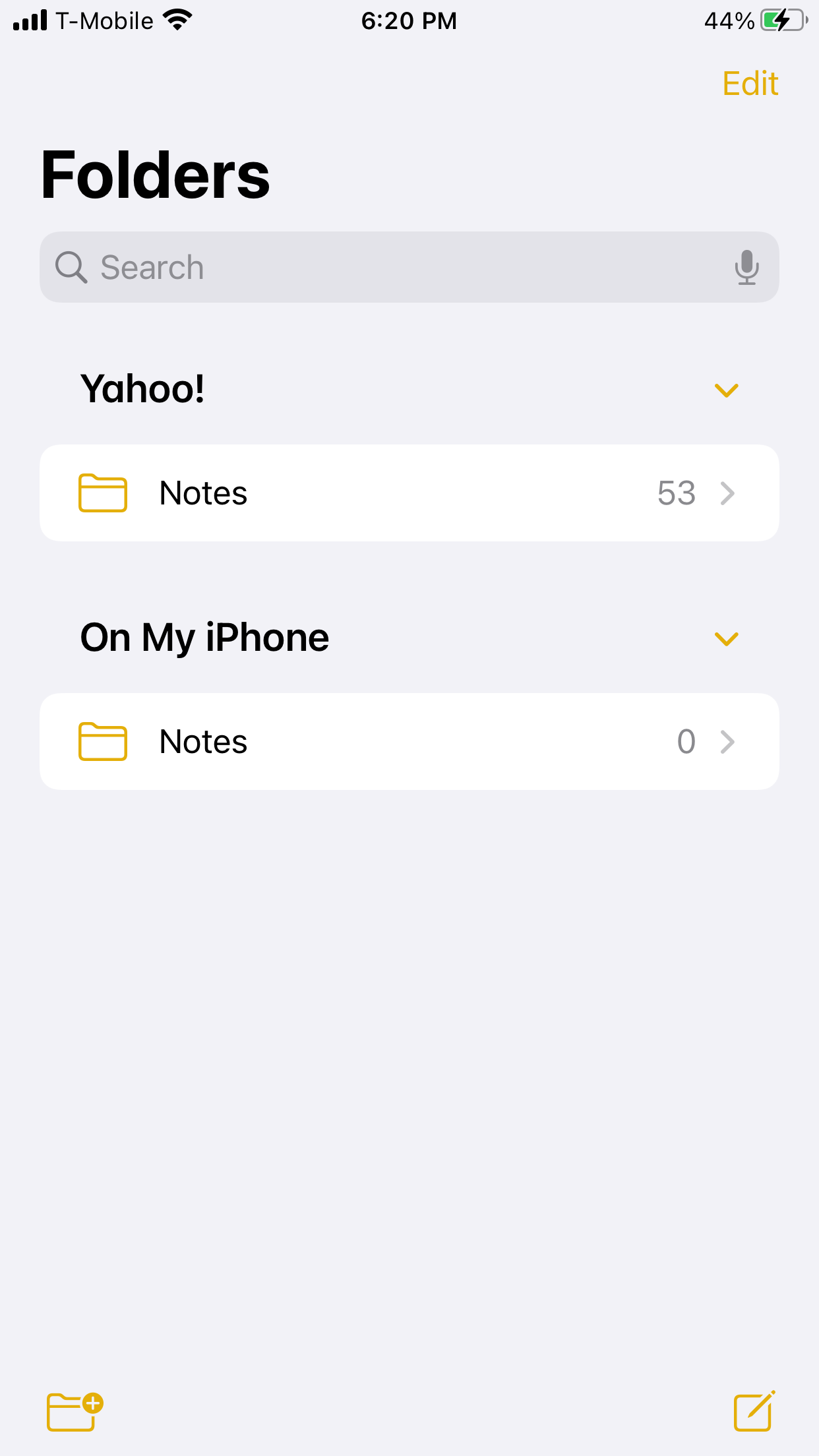 I have tried restarting my phone and deleting/reentering my Yahoo! account in the settings as well. My Yahoo! account is set as my default account and I do have “Notes” enabled as well. My phone(IPhone 6s Plus) is up-to-date with the current IOS version.