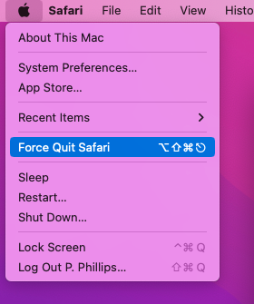 Force Quit on my Mac does not operate. I press the keys "Command Option Escape." Nothing. No even a system-alert chime. I try the pull-down menu, Apple>Force Quit. Still nothing. The Mac does not obey my command.