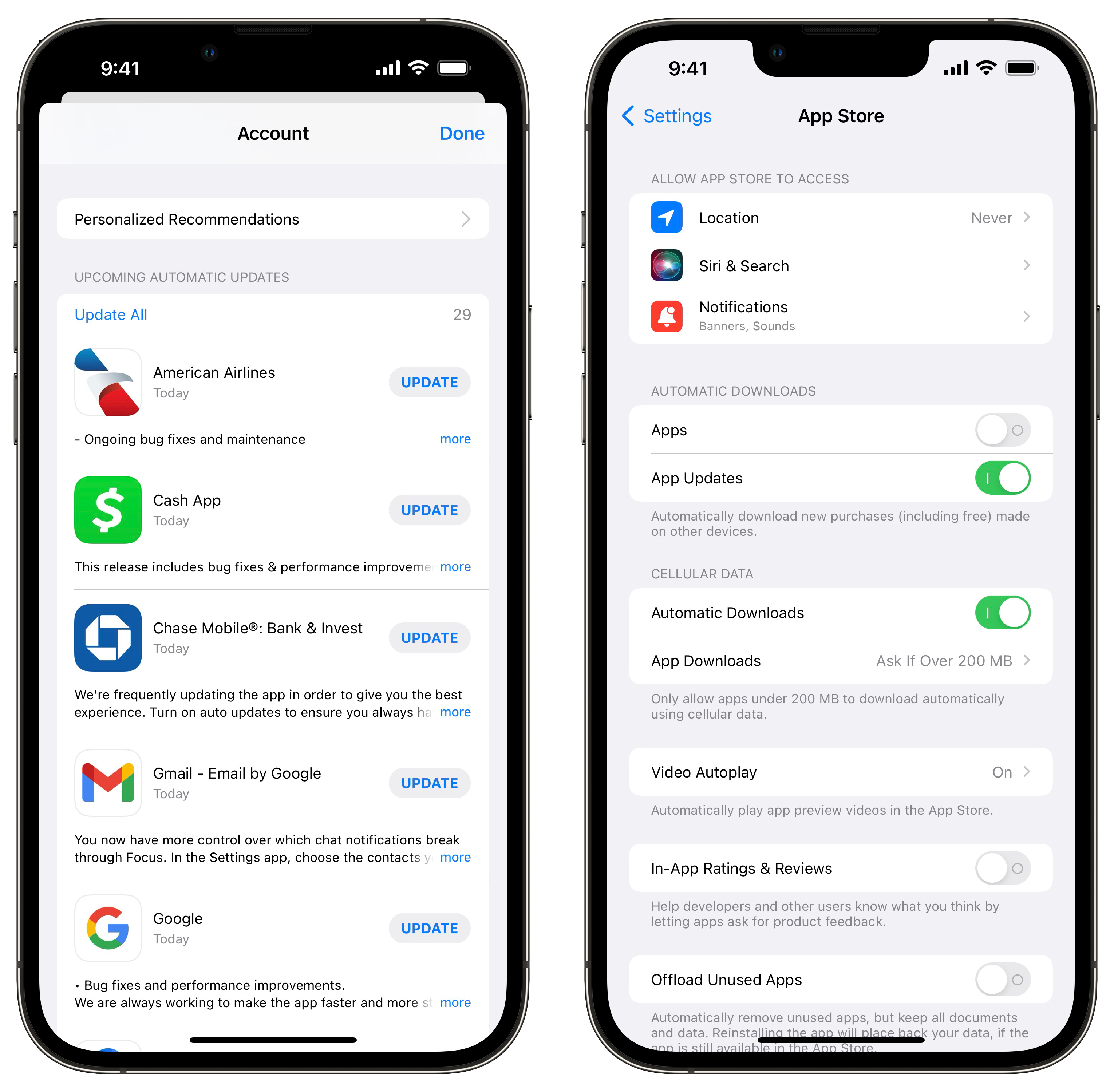 You can update apps in the App Store by tapping your profile icon at the top, then scrolling down to find apps with updates available. You can also turn on automatic updates for apps in Settings > App Store.