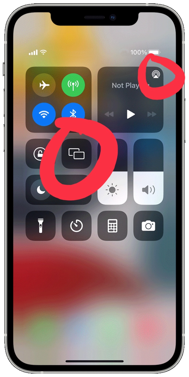 The two controls for mirroring and AirPlay are circled in the image below: