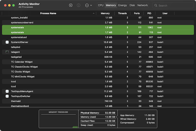 Since update to Monterey 12.3 (also 12.3.1) the process "systemstats" from time to time starts to consume more and more memory until I kill it forcefully with