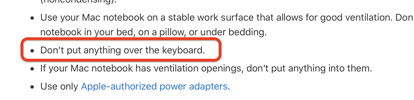 IMHO, closing the lid is putting something over the keyboard!