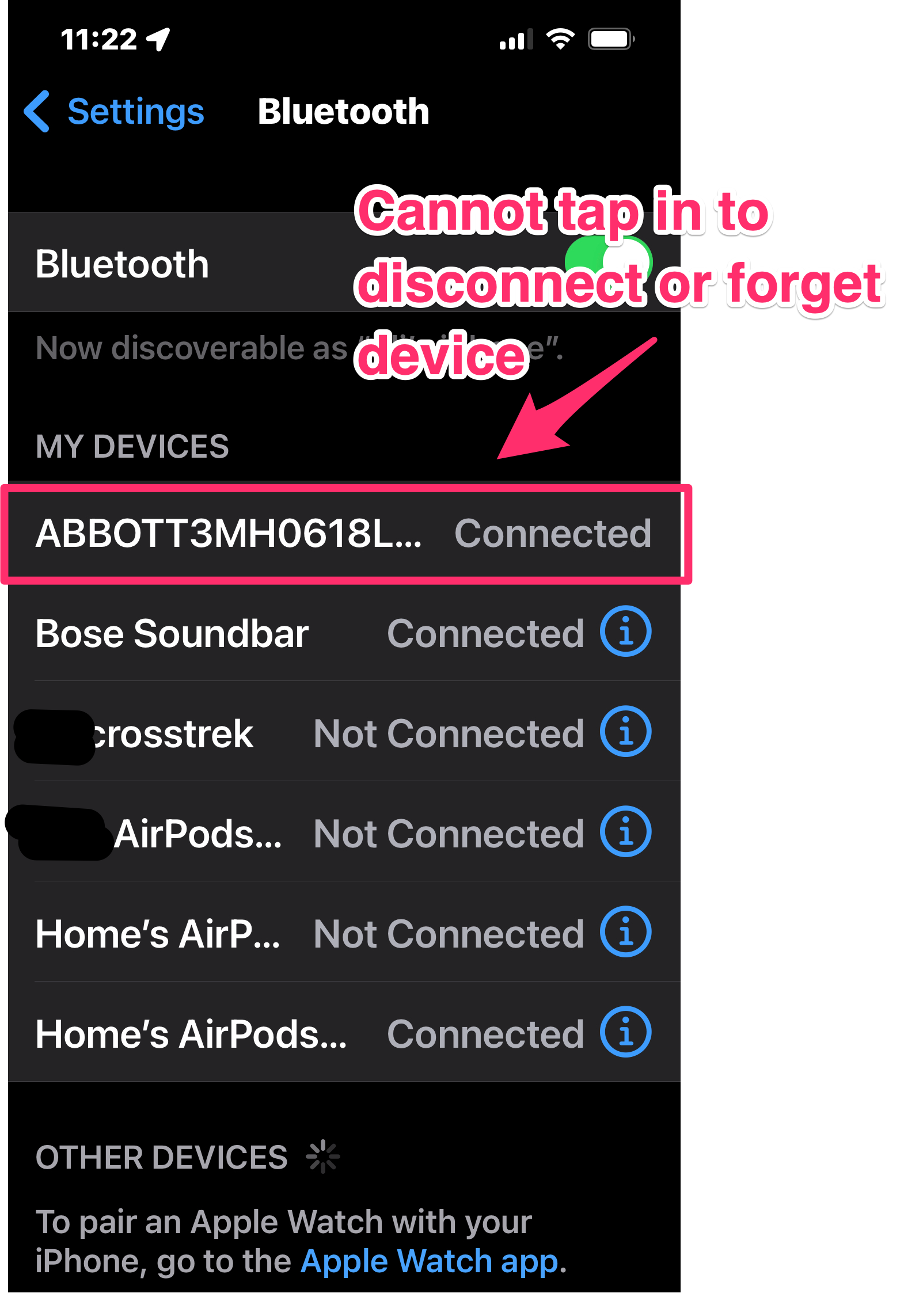 As noted in the screenshot, I can't tap in to this device to disconnect from it. It could be draining my data or be a security threat. I saw a similar post, but no real answers.