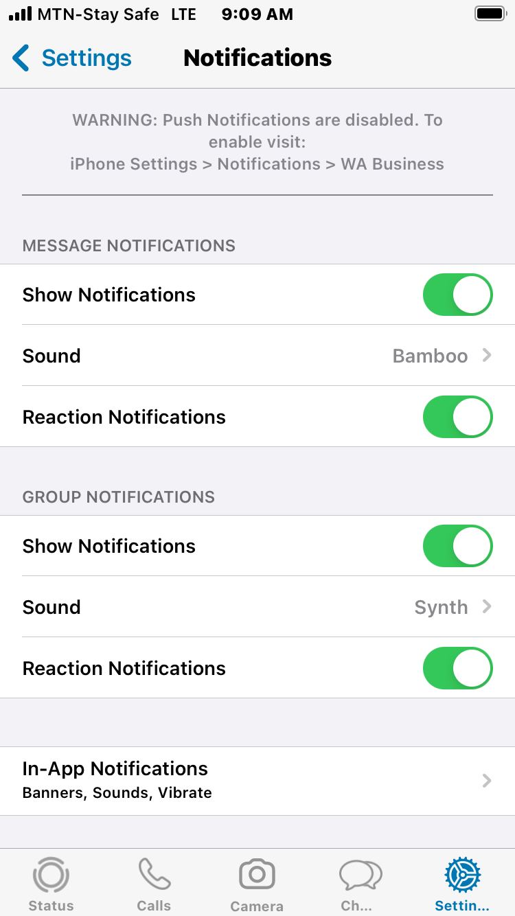However go to Settings within WhatsApp and to Settings in iPhone settings. Make sure it is turned on fully in both.
