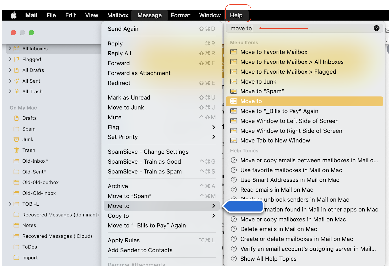 How do I structure the mail folder list in "move to" to match the structure of the list on the left margin of the screen?