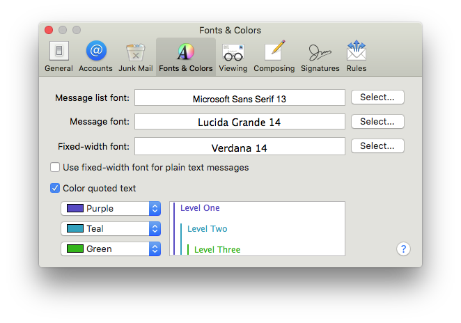 Mail > Preferences > Fonts & Colors ...
