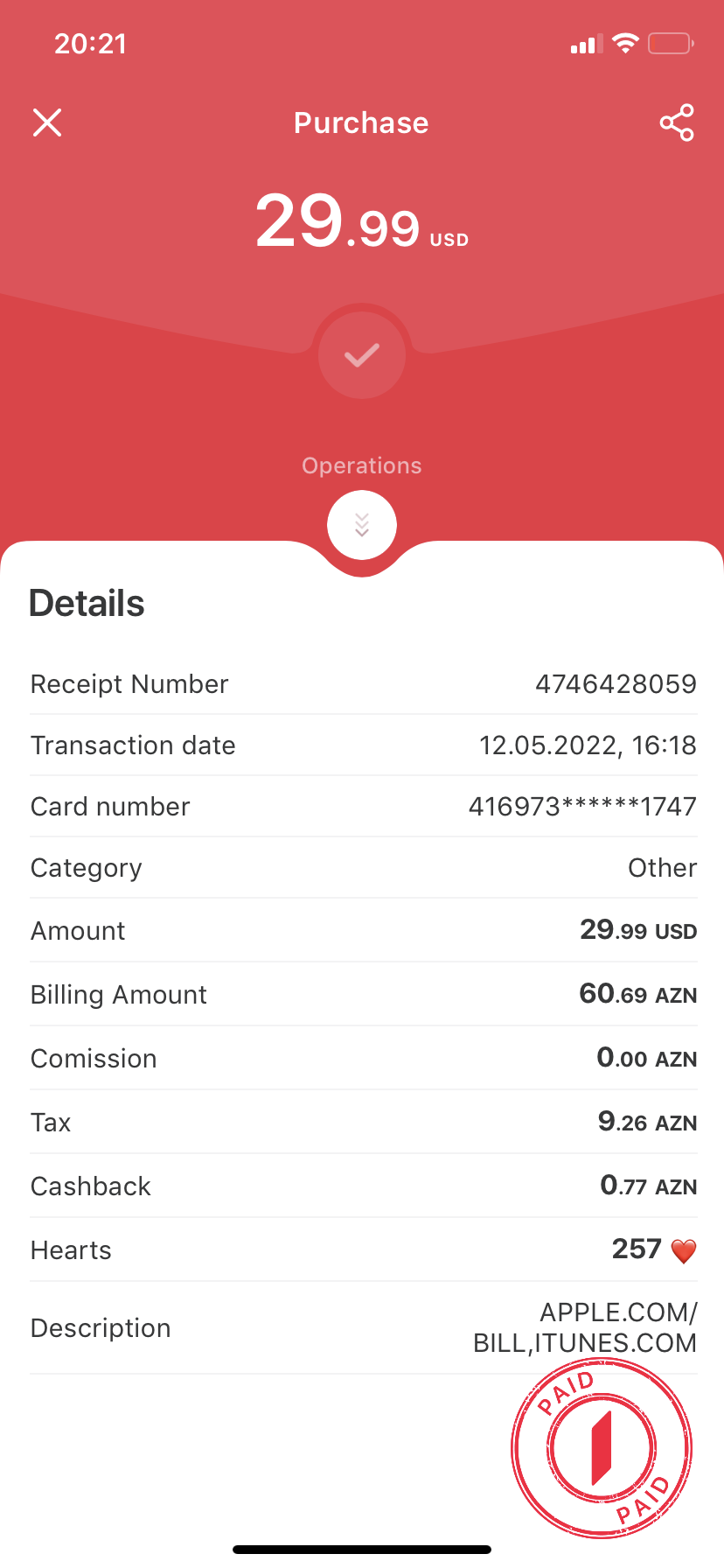 I pay 0.99 USD per month to upgrade icloud space. but today 29.99 USD was taken from my card by Itunes. I would like to understand what this money is spent on without performing any operation. please help and refund my money to my card.