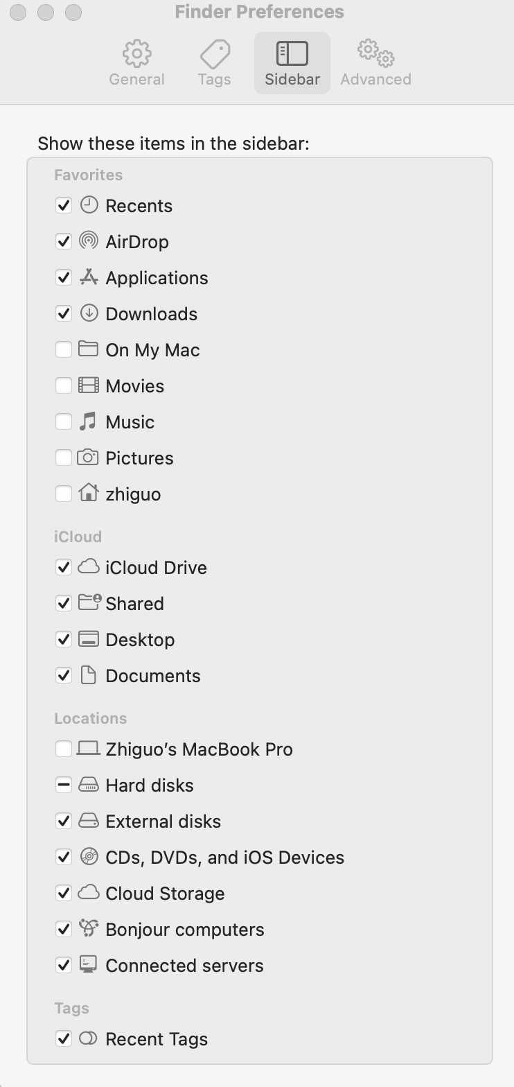 Figure 3: In Finder preference, Documents folder only appears in iCloud