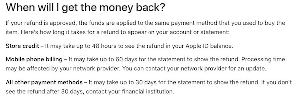 -> If you have requested a refund, you must wait until Apple has approved. Then you will receive a message from Apple.
