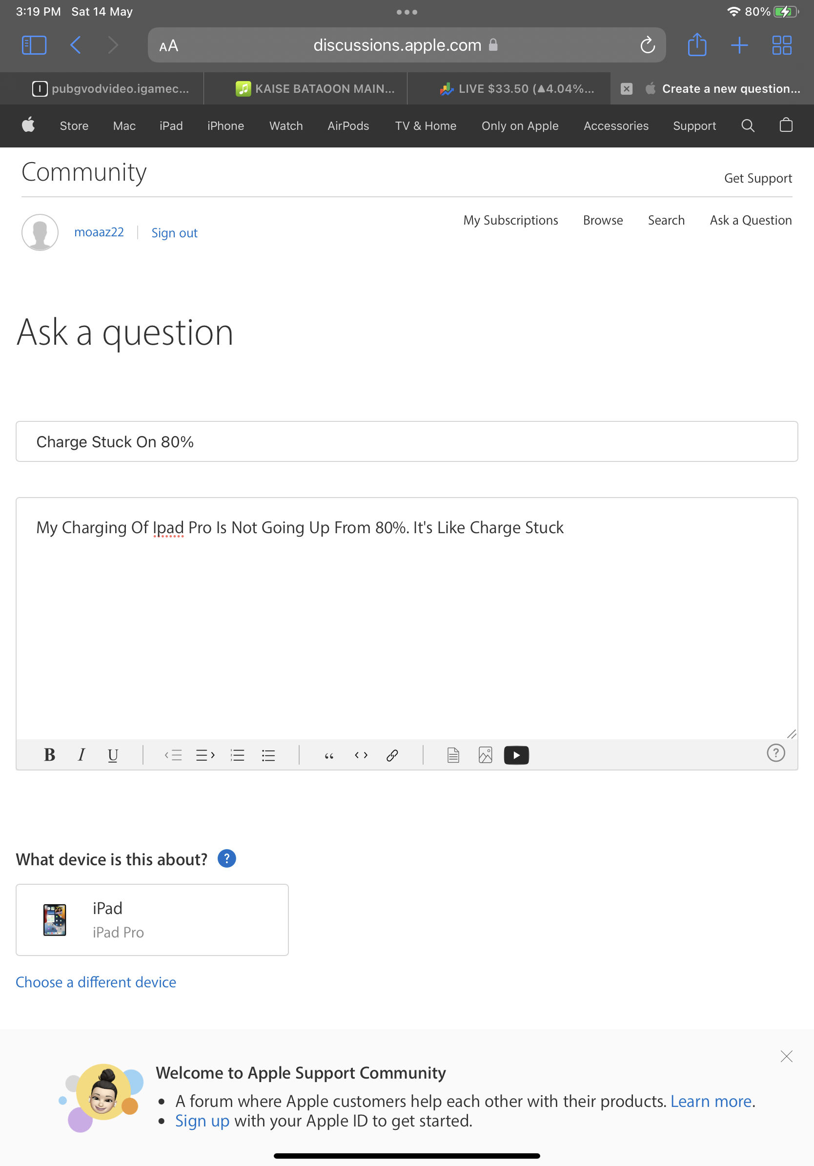 My Charging Of Ipad Pro Is Not Going Up From 80%. It's Like Charge Stuck