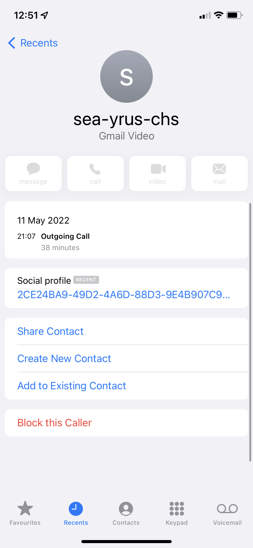 Apparently I made a Gmail video call to an unknown profile on Wednesday 11th,