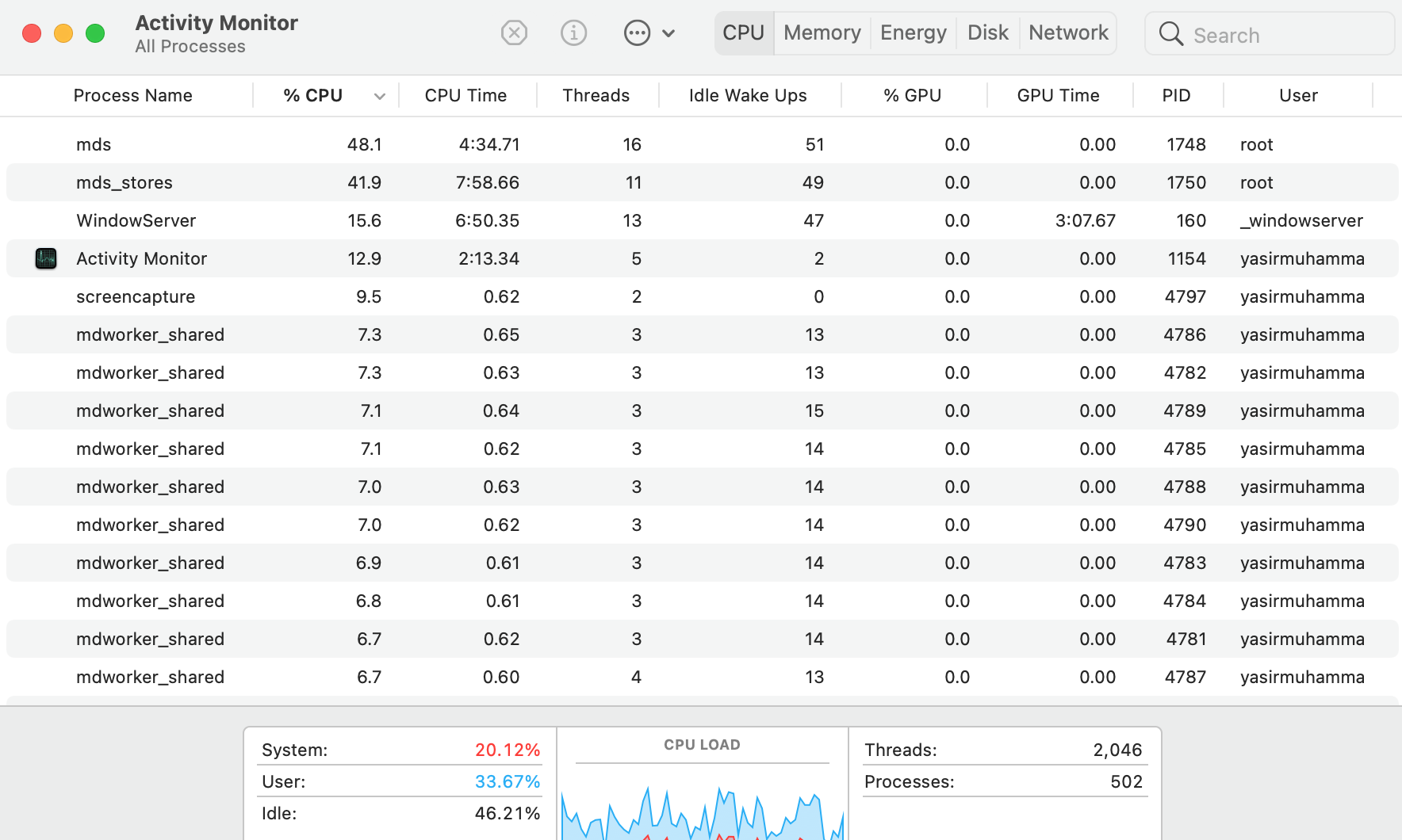 Thanks for the reply. I managed to open the macos in normal mode. I ran the activity monitor and here is the snapshot of activity monitor: