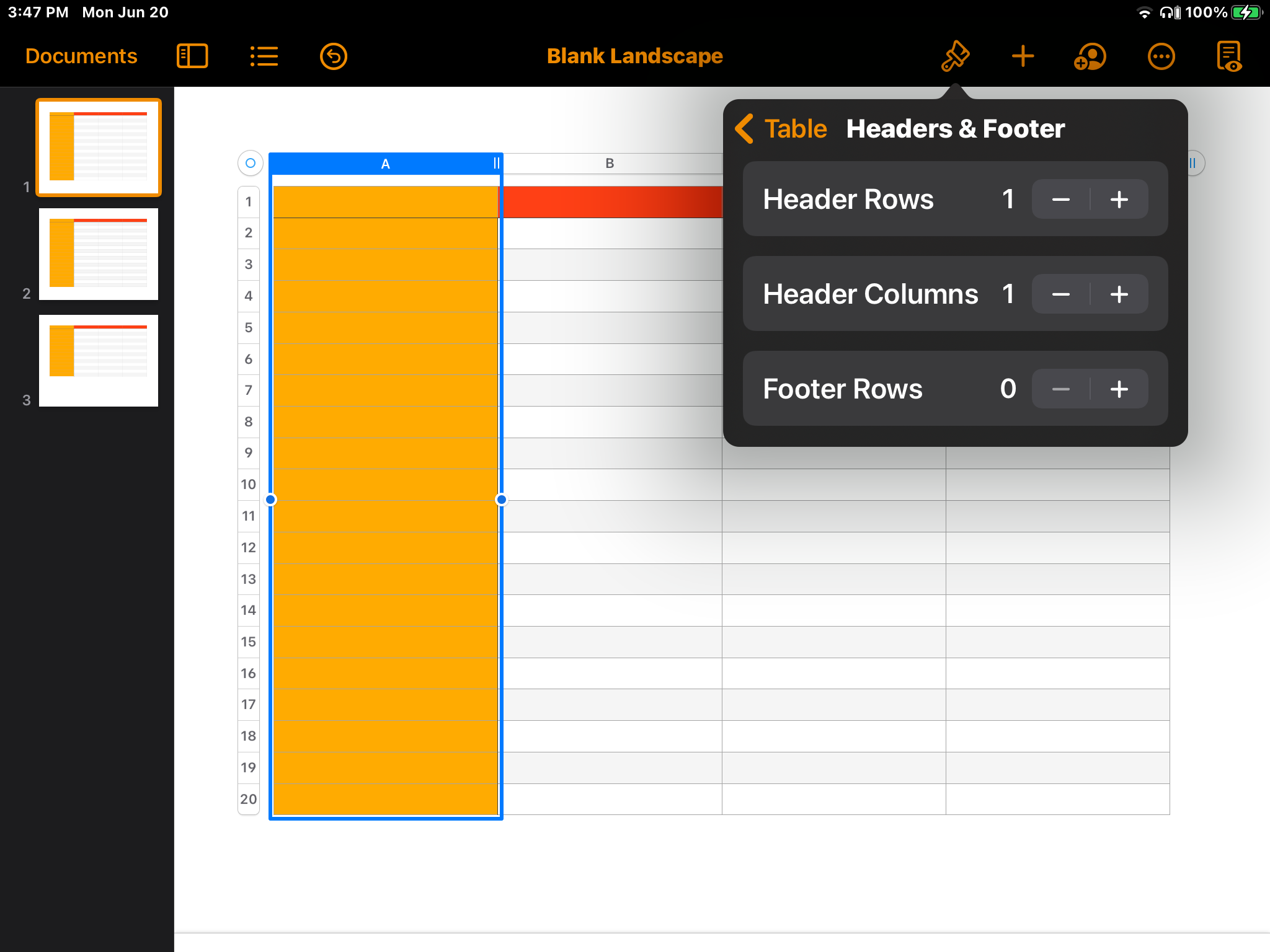 can you still freeze header rows and columns in PAGES on ipad pro? If so, how?