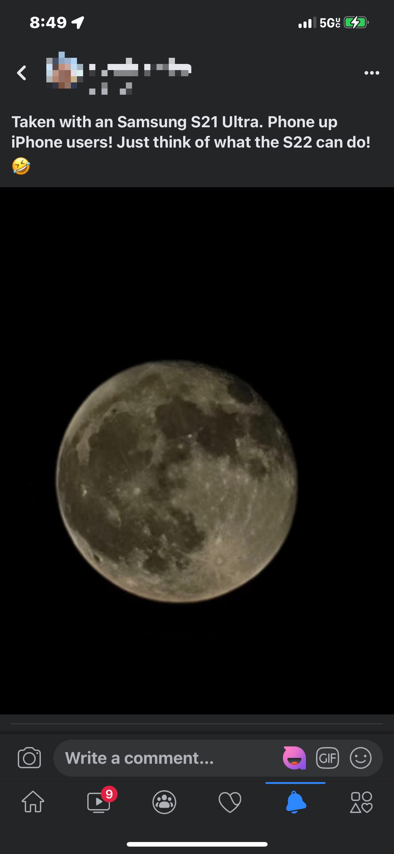 I will upload a Facebook post of a Samsung phone user pics and my pic of the moon we took with our phones.