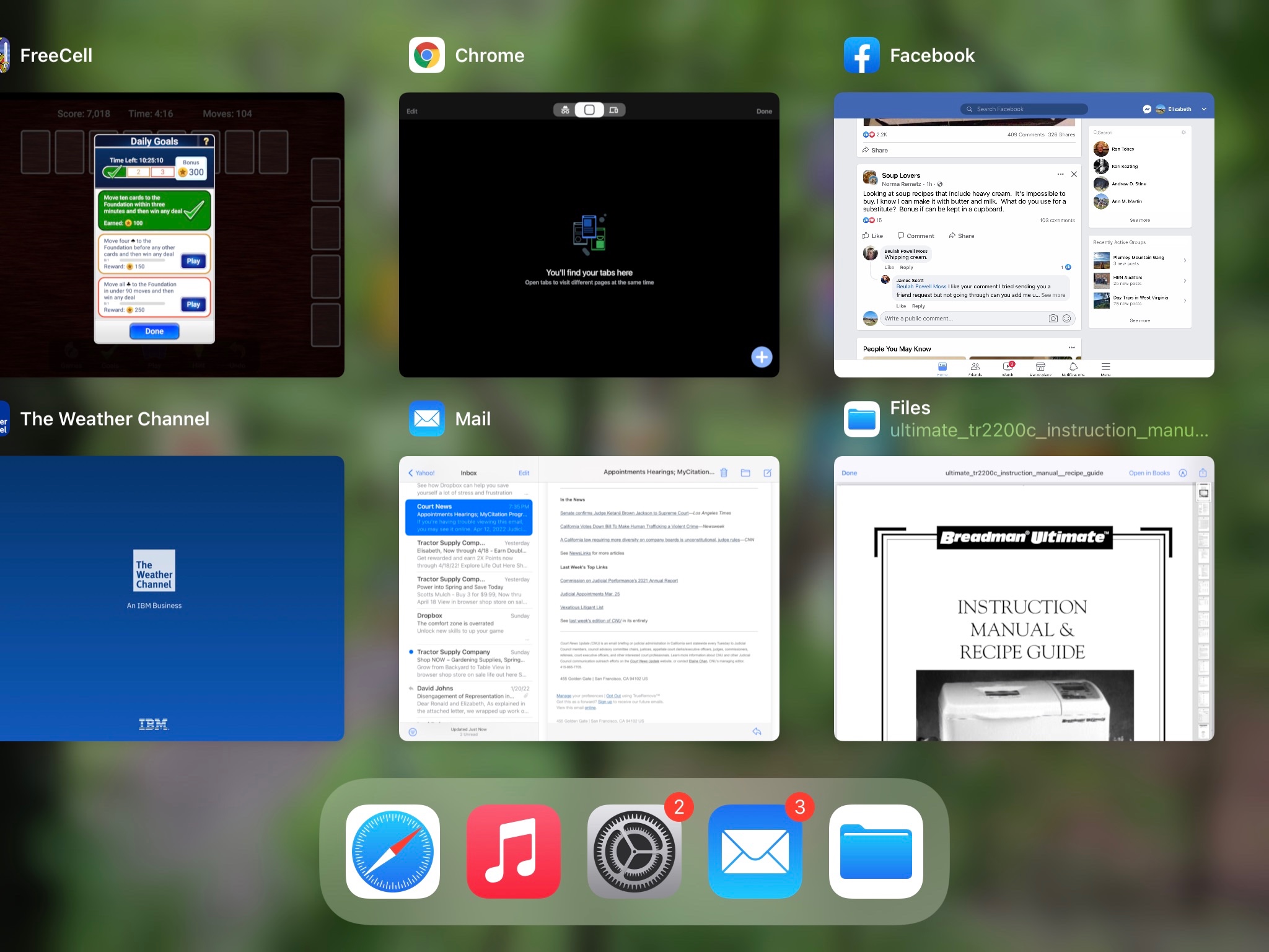As illustrated, you have accessed the Task Switcher. Depending upon your iPad model, this screen is accessed in one of two ways.