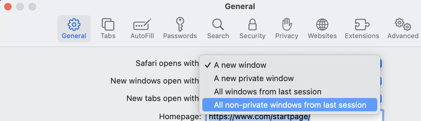 So I notice that whenever I shut down my MacBook pro now and then, safari closes all the tabs and I lose them, having to type in all the url's after I start it up later. I dont shut it down often but its annoying when I do. Any idea how to fix this?