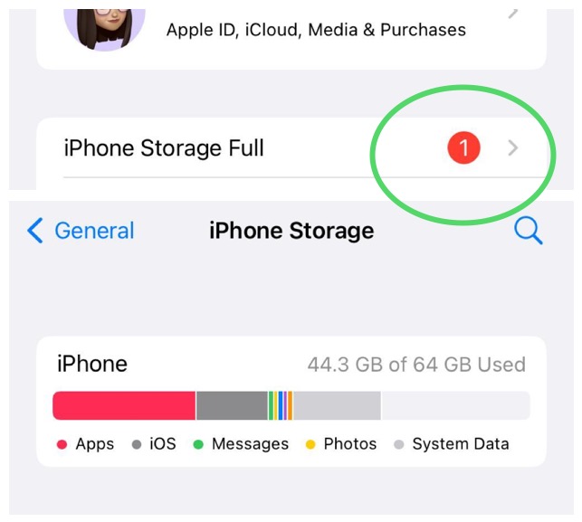 My iPhone is giving me the alert that the Storage is full when I still have 19.94Gb free (out of 64 Gb). how can I fix that.