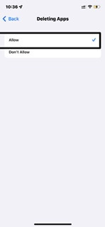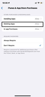 Open Settings ➔ Screen Time ➔ Content & Privacy Restrictions ➔ iTunes & App Store Purchases ➔ Deleting Apps : Set this to ALLOW