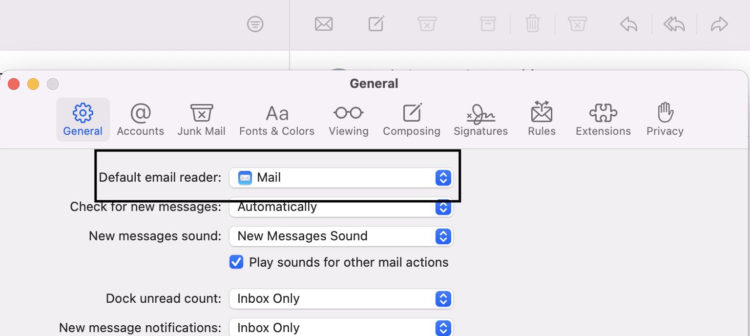 I use Outlook for work on my Macbook Pro - and I'm trying to change the default mail application to Outlook, but no matter what I do in the Mail settings it still defaults to the Apple Mail program. I've tried rebooting, changing the default mail app to Mail and then back again to Outlook - nothing works.