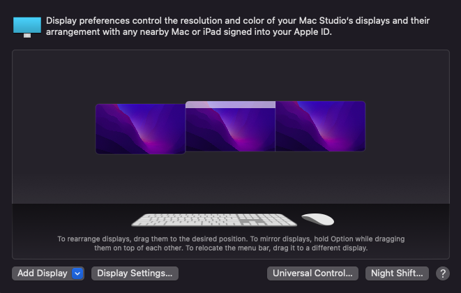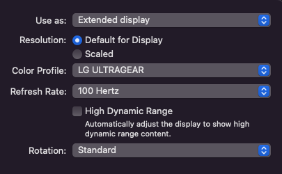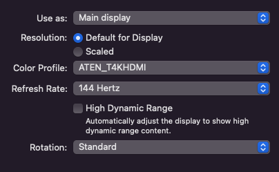 All three of my displays support 100 Hz, 120 Hz, 144 Hz. However I am unable to drive all three at 144 Hz on this Mac Studio — if I attempt to do so, one of the monitors will continuously blink off and on until I change the refresh rate to 100 Hz.