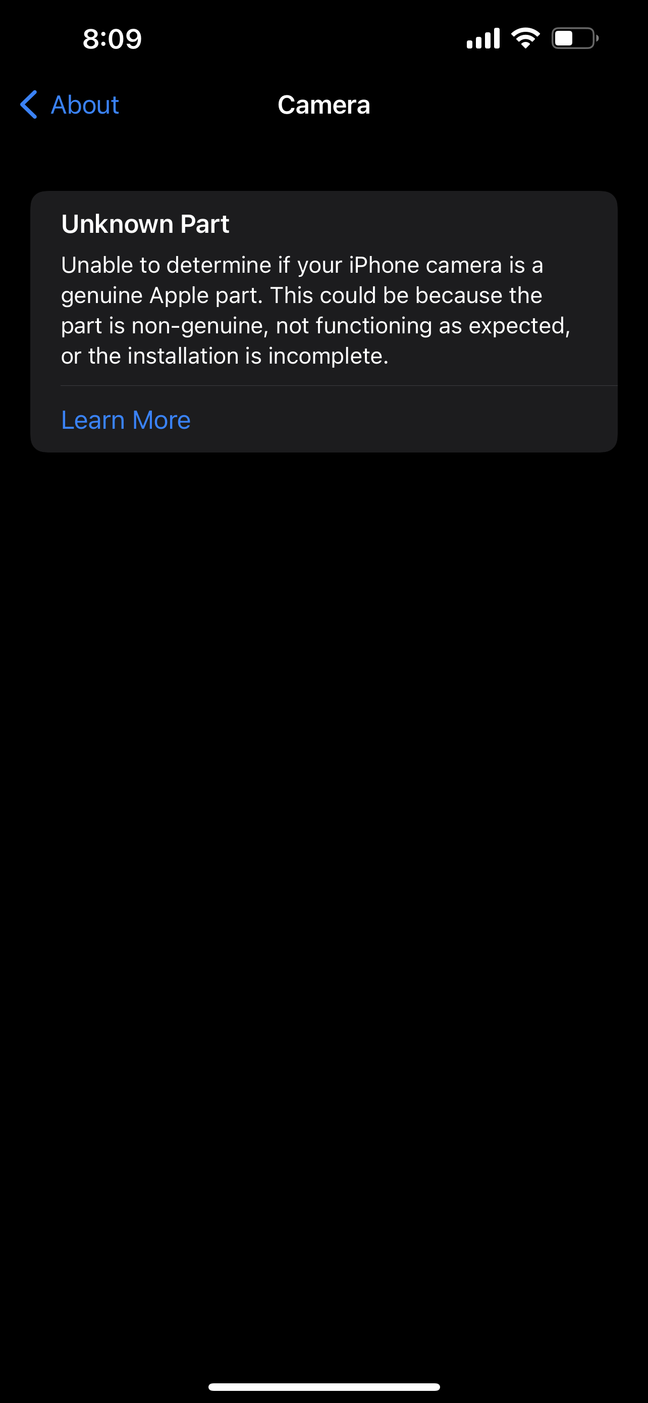 I’ve been using the iPhone 13 for over 6 months now and never dropped the phone or critically damaged it. But after an update to iOS 15.4 my camera suddenly stopped working with a notification saying my camera is not a genuine apple part and now I can’t use the cinematic or any other mode of the camera. I’ve tried resetting the phone couple of times but it makes no difference. As I live away from apple coverage I’m not being able to take the phone to them. Any idea what might be the cause and is there a fix?
