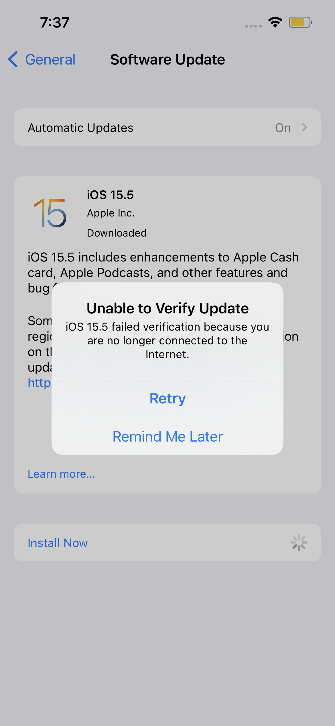 Use my User Tip: Use an iPhone 12 or later, that is using 5G, in order to update over Cellular - User Tip