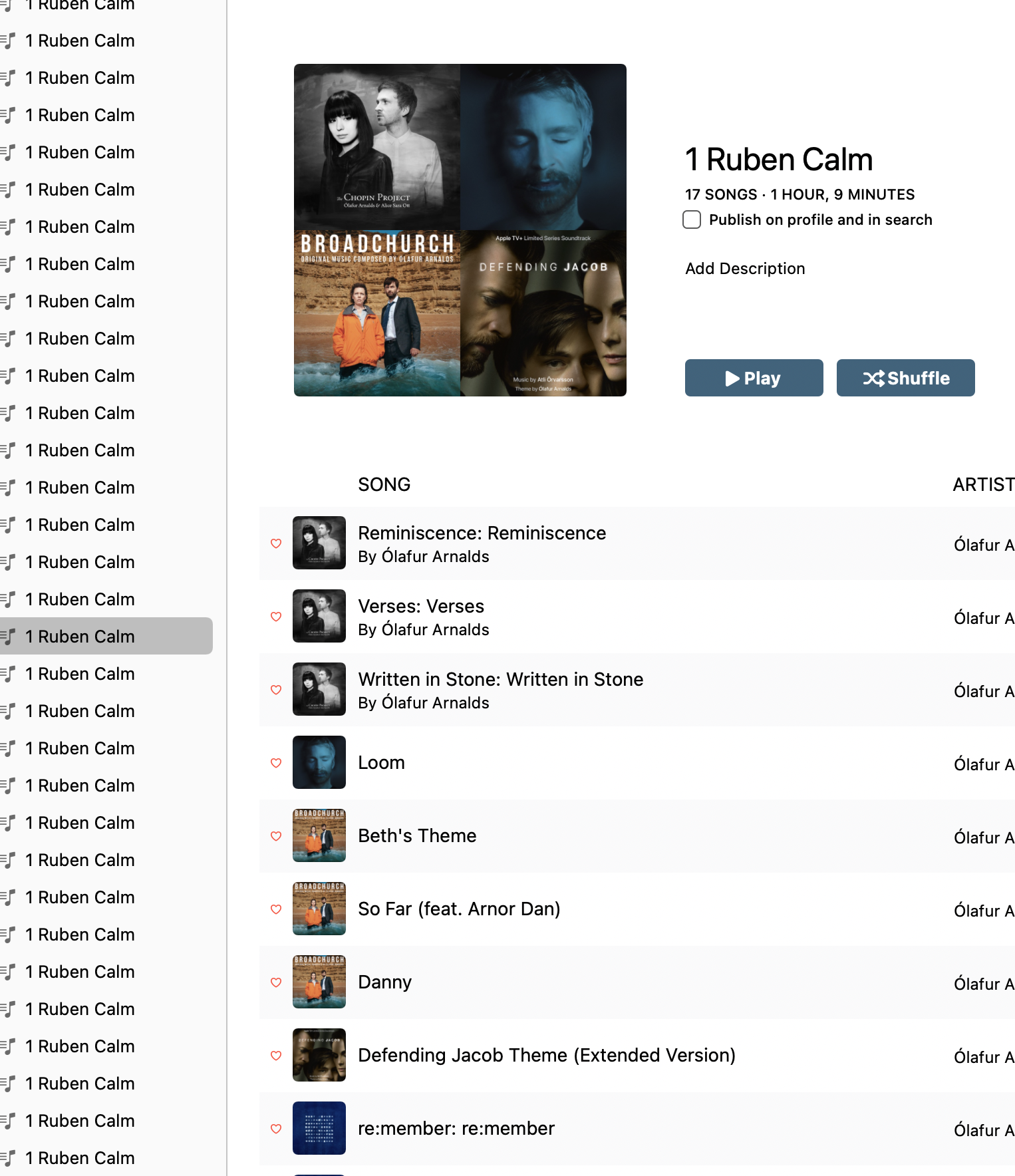 My apple music account is duplicating my playlists into the hundreds per playlist. How do I delete them all at once (and not manually one by one -- which would take me tens of hours at a minimum)? See screenshot. For example I have >500 of "1 Ruben Calm" playlist duplicated. Doing it the manual way would be very very difficult? I tried Command + Delete but it doesn't work. Thanks.