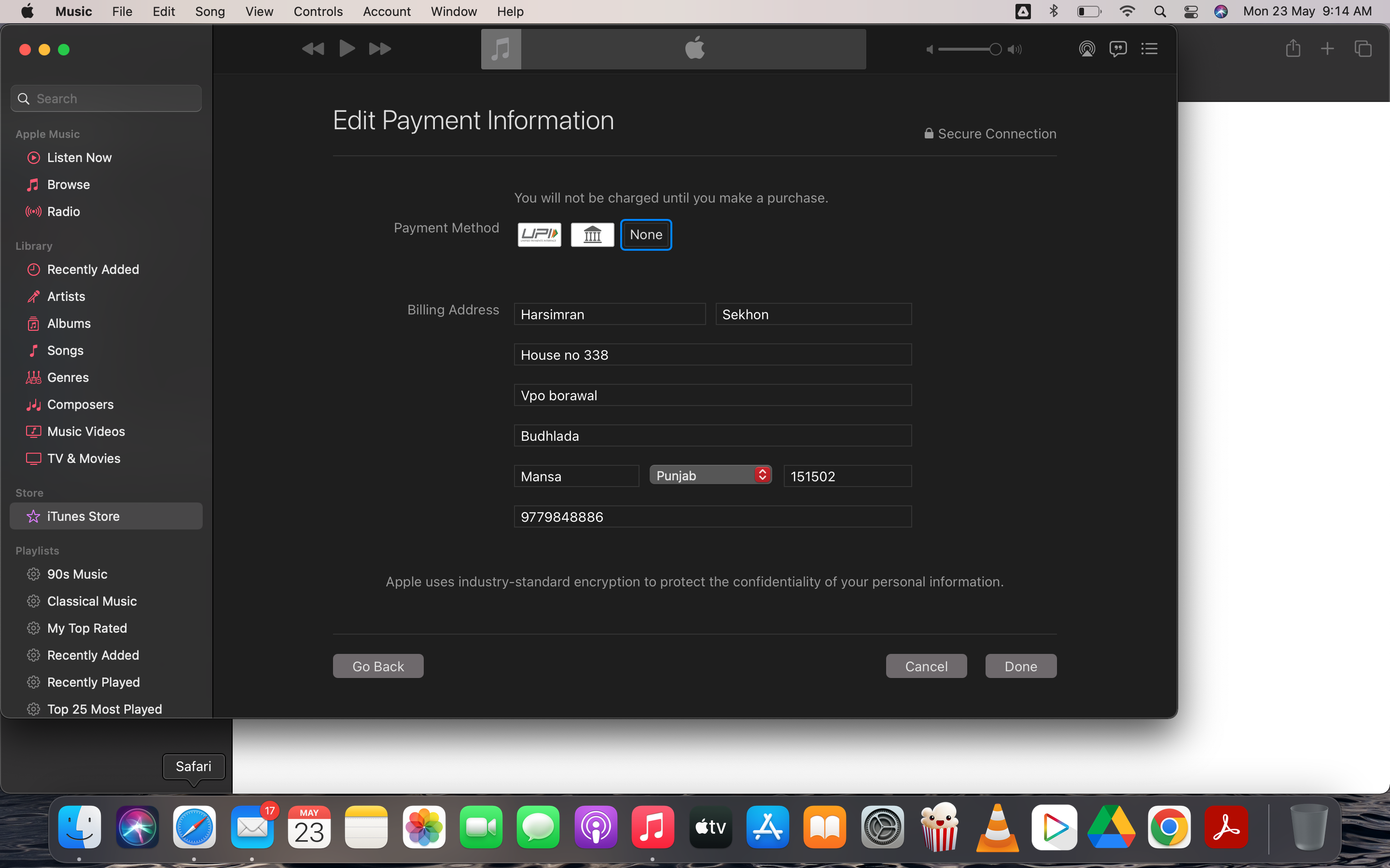 I am unable to add a payment method to my Apple ID. It not accepting any of my cards and most of the time there is no option of credit/debit card. attached is the screenshot