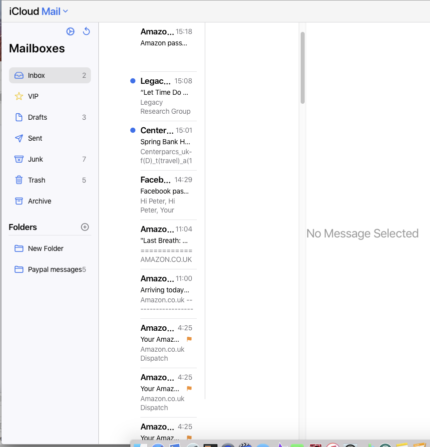 My iCloud Mail page is showing narrowed down columns like this: