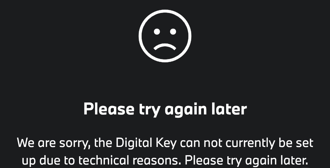 When setting up Apple CarKey it says “We are sorry, the digital key can not currently be setup due to technical reasons.”