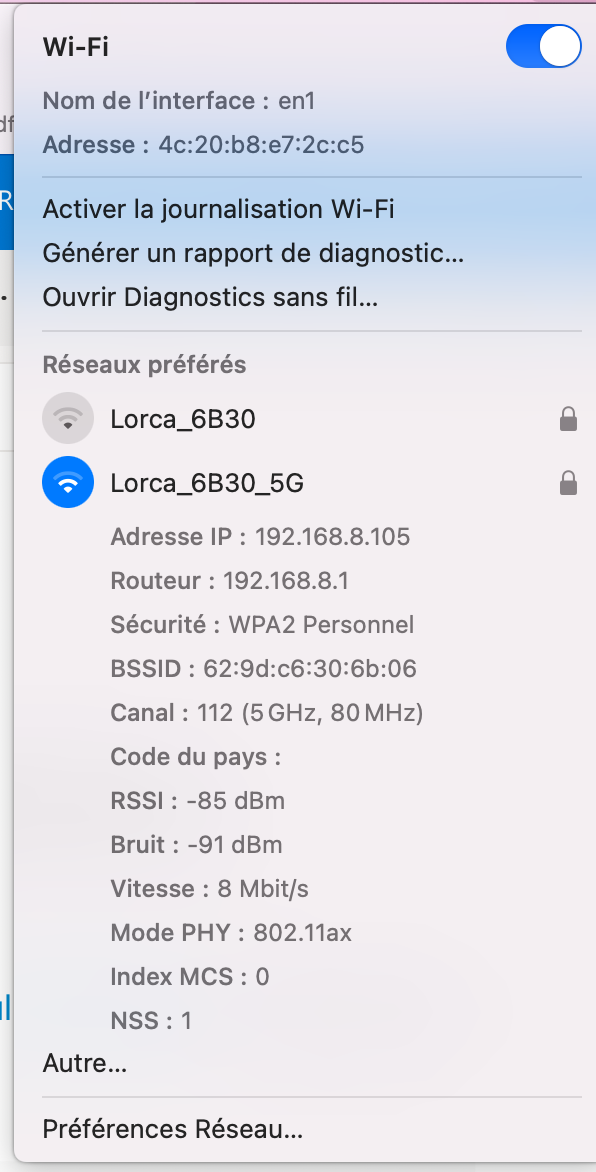 The low signal itself is not a problem, it's normal since I'm far from the router. In the other room I have 500Mbps. In my study around 60-100 with the MacBook Air and iPhone, and 10-30 with the Mini.