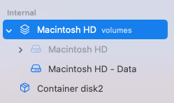 1: APFS Volume Macintosh HD - Data 51.4 GB disk2s1