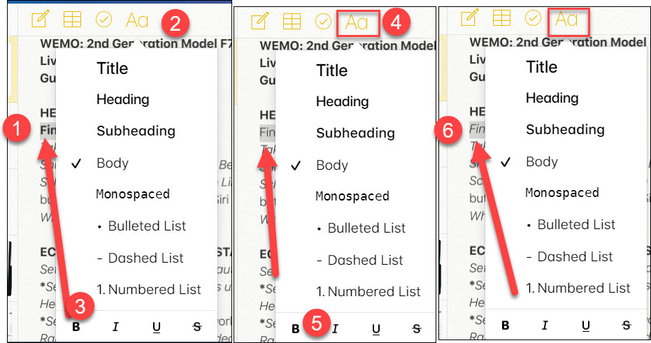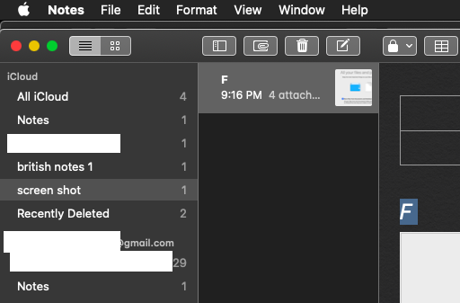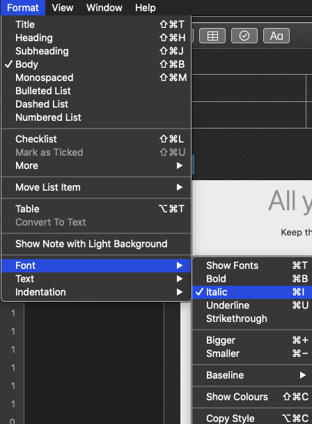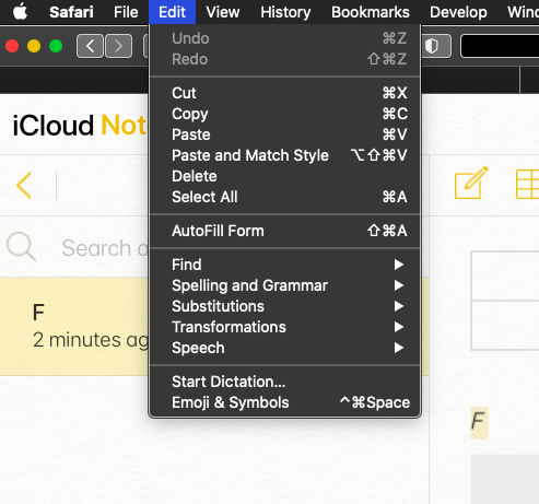 Notes viewed on icloud.com display a capital "F" in bold and not italicized.