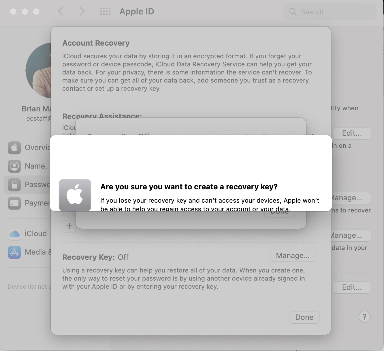 When trying to set a recovery key for the first time...a window opened that says, "are you sure you want to create a recovery key?" But the window is small and won't expand to let me see the whole message/window and now I can't even restart my computer. I can't close system preferences