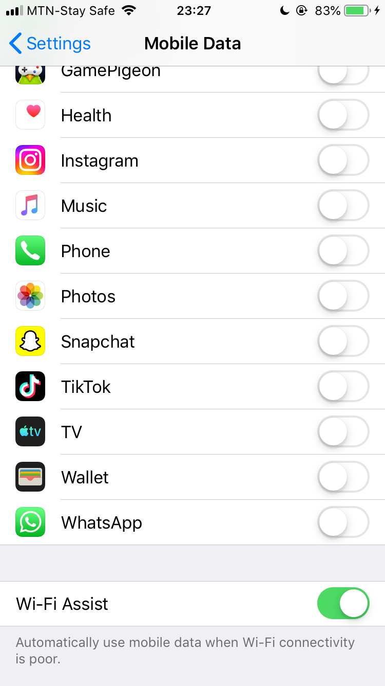 My mobile data automatically goes off on its own. Only Safari that works