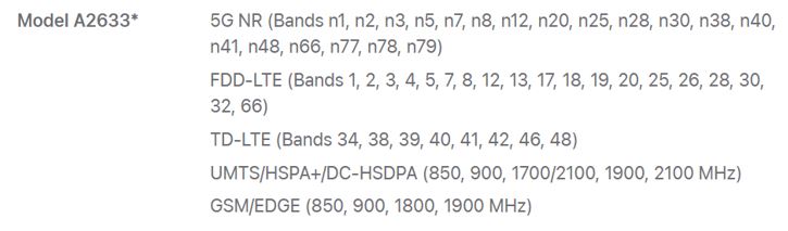 The iPhone 13 I bought is an A2633 With the following band specifications: