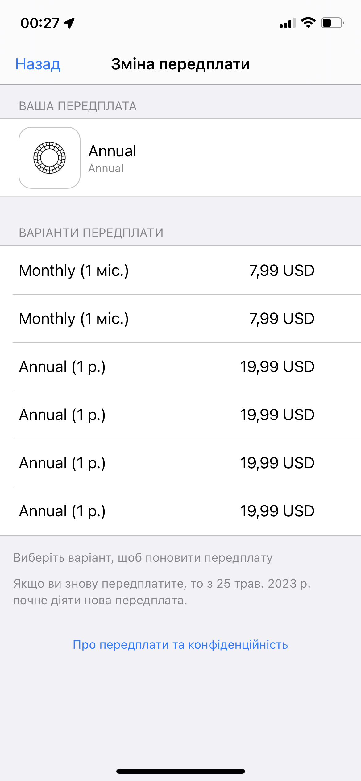 good evening, I can’t cancel my subscription to the vsco application, they want to withdraw money from the card. i don’t habe "unsubscribe" button here