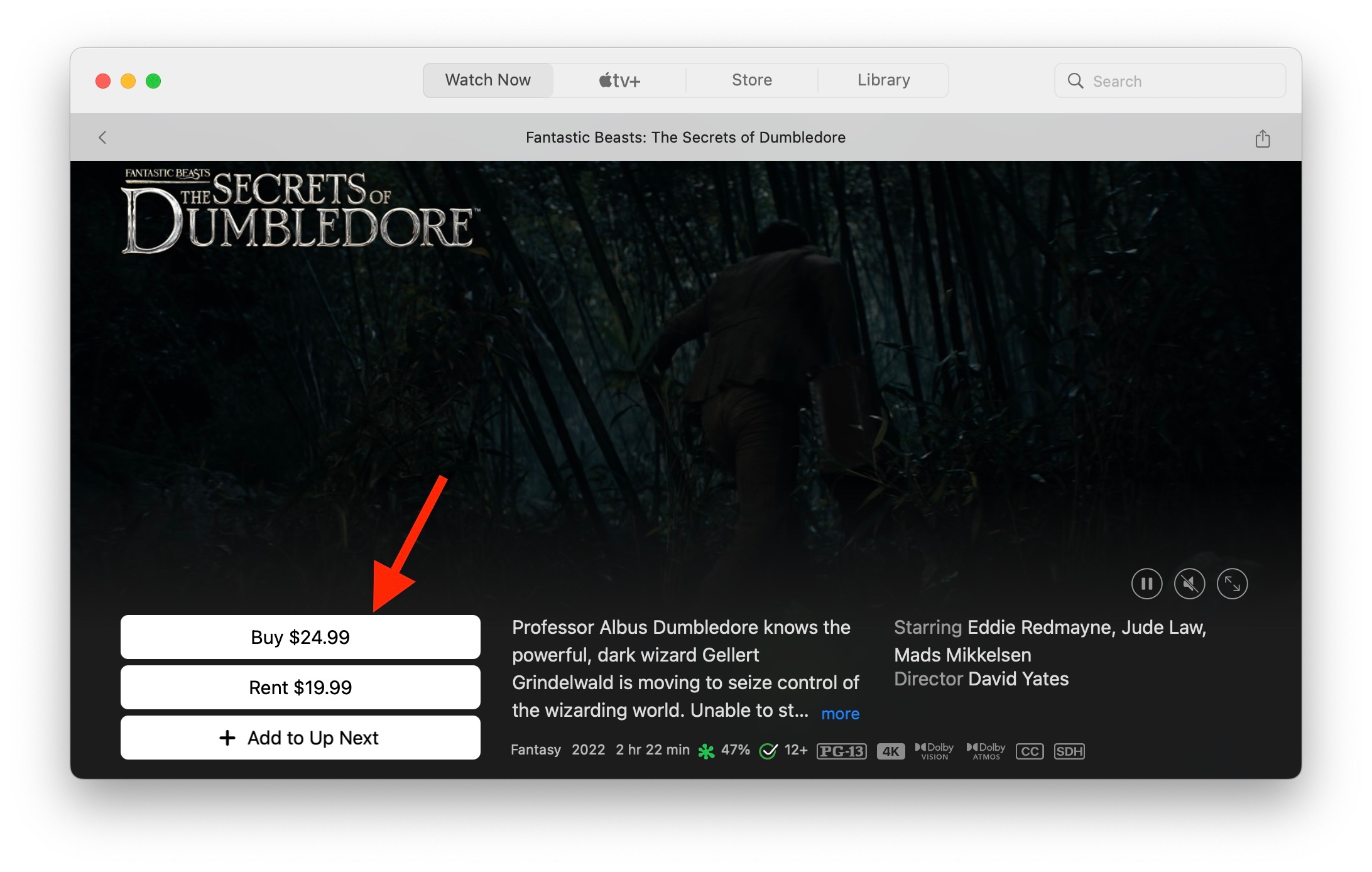 To buy movies from other studios or production companies that would not fall under the Apple TV+ subscription, you can select the price on the movie and follow the onscreen prompts to complete the purchase.