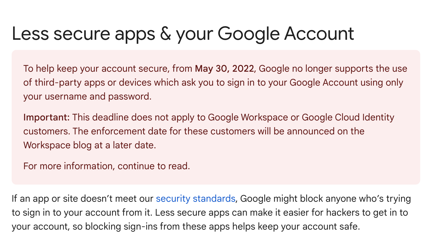 Below is the Google notice announcing the change. I cannot find any direction from Google or from Apple as to what the new sign in policy is. Can anyone please help? Thanks very much.