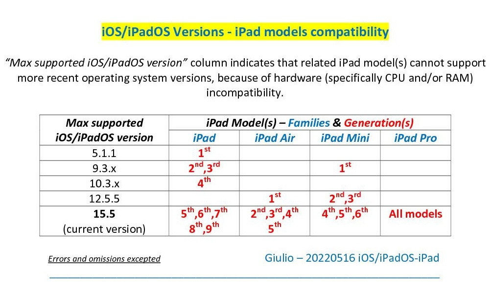 Newer models, not appearing in this list, are all able to be updated to the current version, iPadOS 15.5
