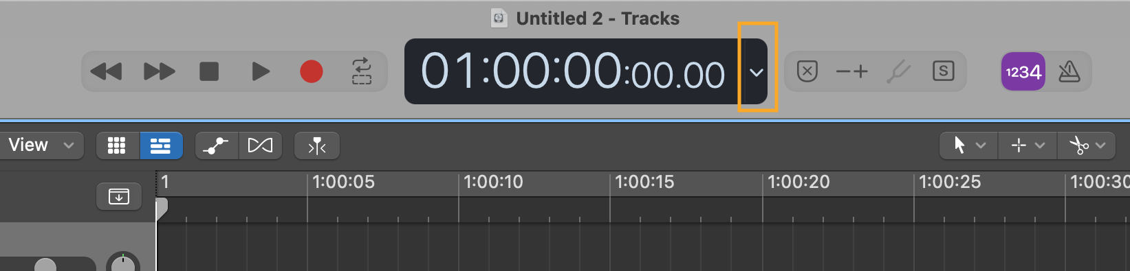 So after opening the new project in logic pro, instead of the beats being 1, 2, 3, 4 its instead it looks like 1:00:05, 1:00:10, 1:00:15, 1:00:20 and on top of that I can't hear the click. Does anybody know what's wrong. I opened the Ocean Eyes demo session in logic which is what I think messed it up I just have no idea how to fix it. Any answer is greatly appreciated. Screen shot of what i'm looking at now that it's messed up vvv