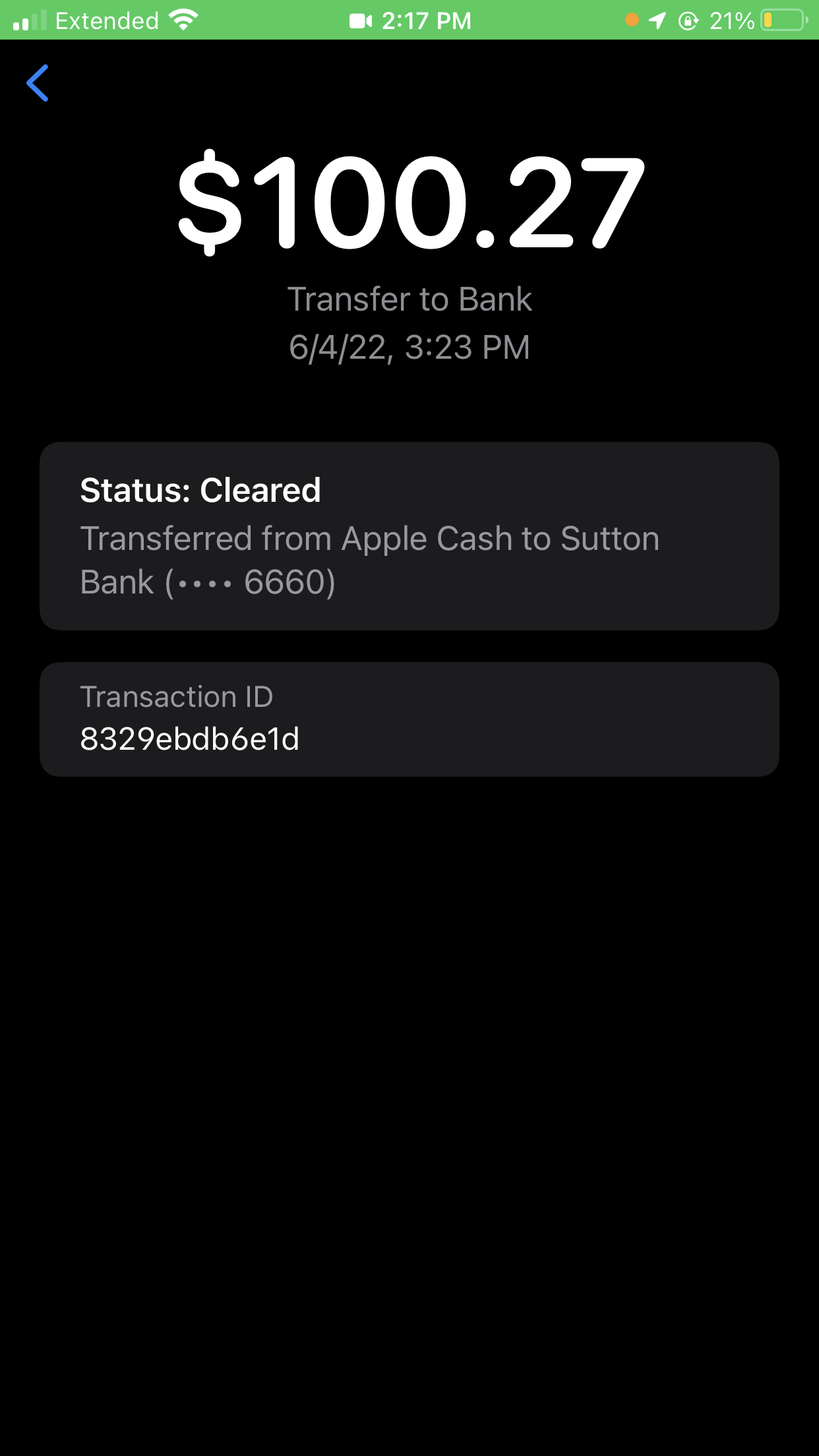 So transferred 100$ too my cashapp with Apple Pay but the payment never went threw and I can’t get my money back