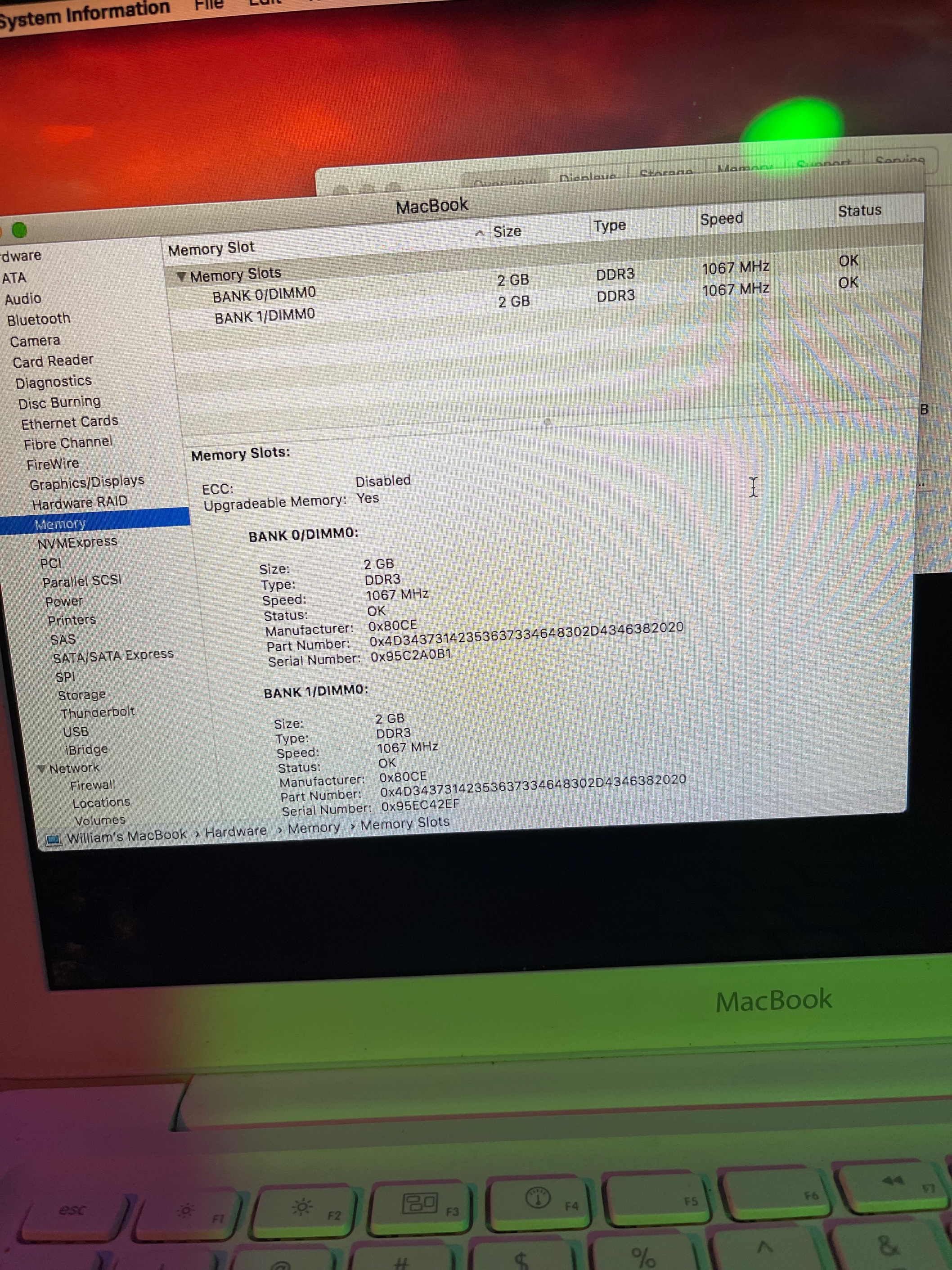 I have a Mid-2010 “plastic” MacBook (running Sierra 10.12.6) I was given recently, decided to poke around aka see what could be upgraded (ram,hdd,etc) and to clean out the fan, I was surprised when I found out that it actually has two 8gb 1066MHz Apple OEM ram populating both dimms, however in both about this Mac and system report it says there are two 2gb sticks populating both slots, I’ve attached photos of what MacOS is showing along with the ram itself. also, after doing some info digging it seems these models can supposedly support up to 16gb total which I found quite interesting as it only has a core 2 duo for instance my Late-2008 unibody MacBook with the same cpu and clock speed can only support up to 4gb.