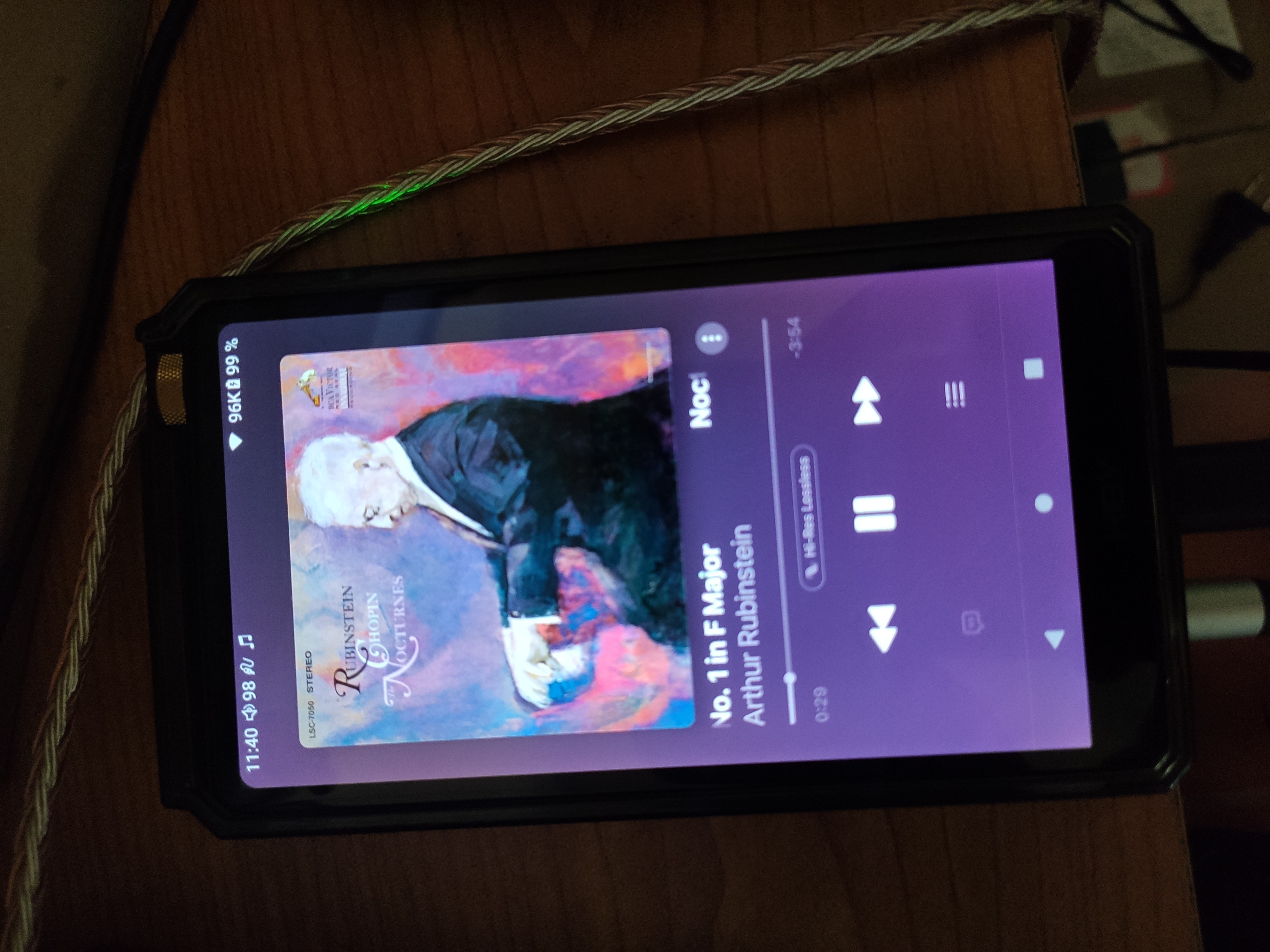 This Album Chopin Nocturnes should be in 192khz, as you can see in the picture, at the rigth top of the screen the device shows 96 khz, the device has integrated a digital to analog converter.